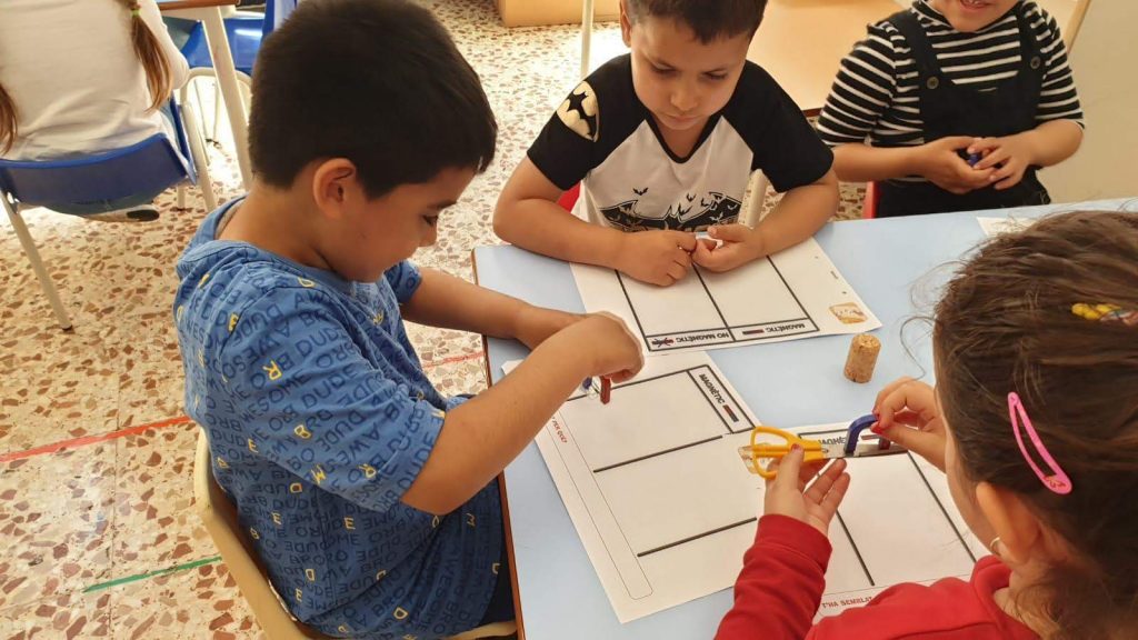 Eperimentem amb l’ús d’un imant i diferents objectes: tisores, suro, clip, goma d’esborrar, etc.