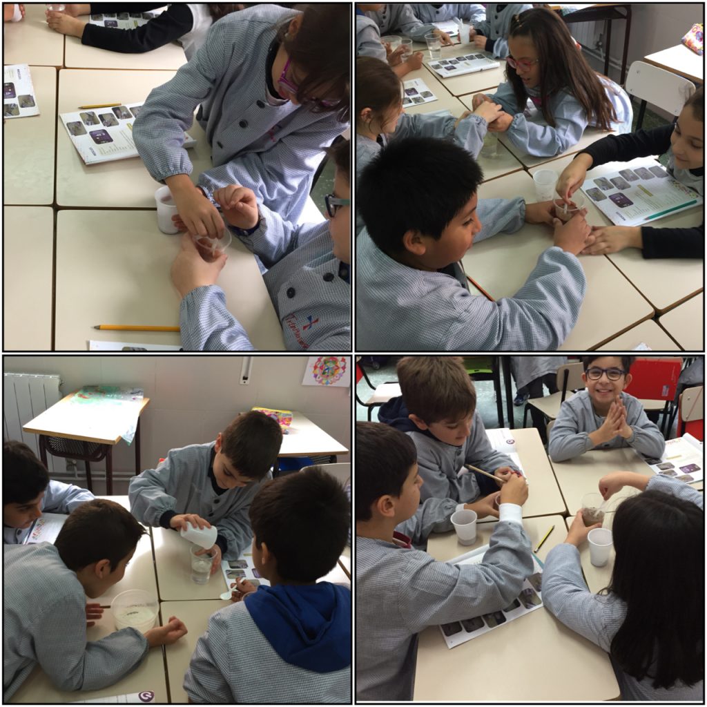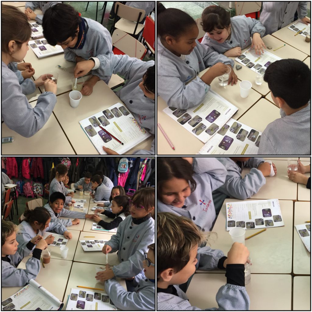 Els alumnes de 3r després de treballar les mescles homogènies i heterogènies a classe de coneixement del medi, vam fer-les nosaltres mateixos per acabar d’entendre que volia dir homogeni i heterogeni.