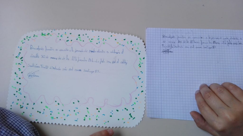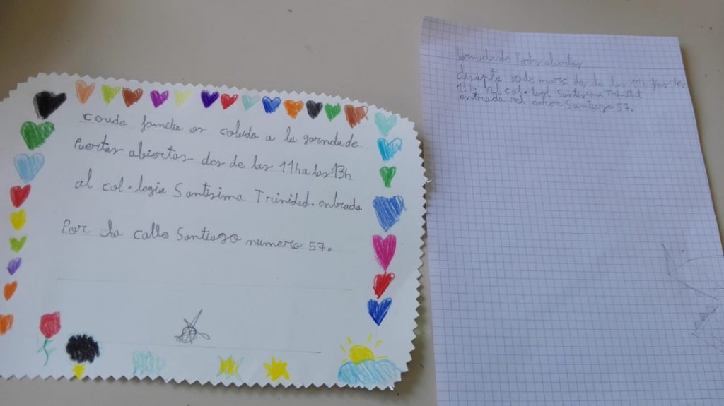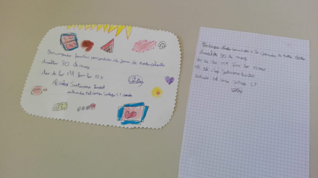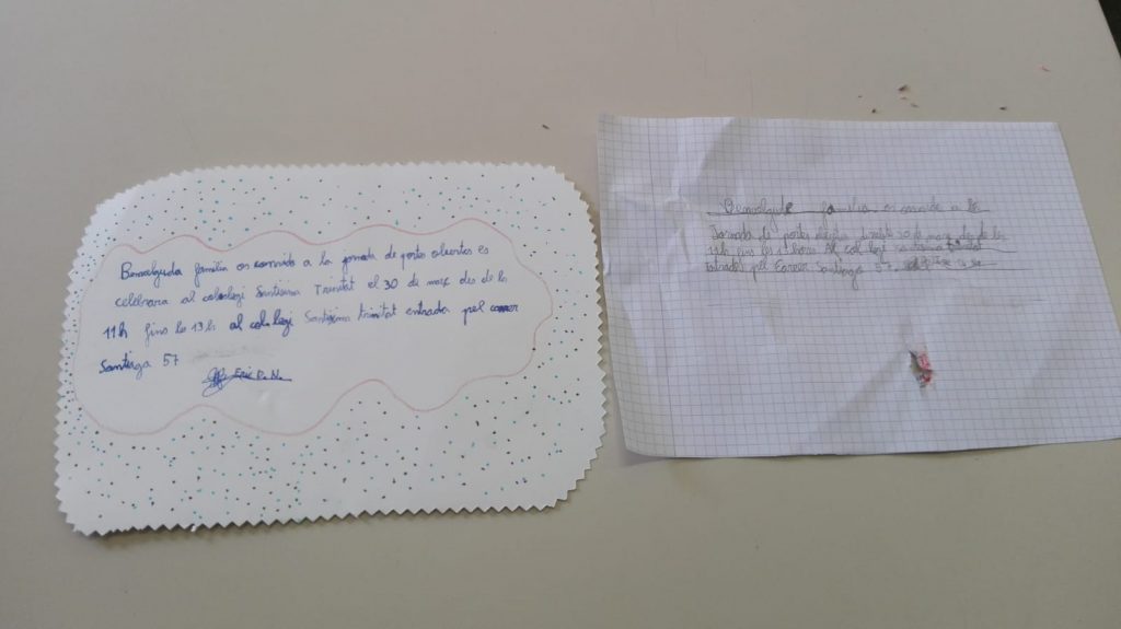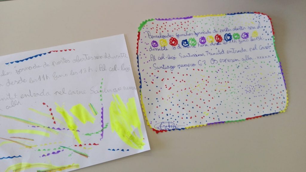 Portes obertes admin29/03/19 La classe de tercer, avuí hem fet una invitació, per convidar a la nostra família a la jornada de portes obertes de demà. Ens hem esforçat molt, perquè quedès ben maca i ens faria molta il·lusió que els pares vinguessin.