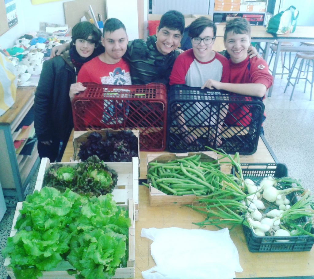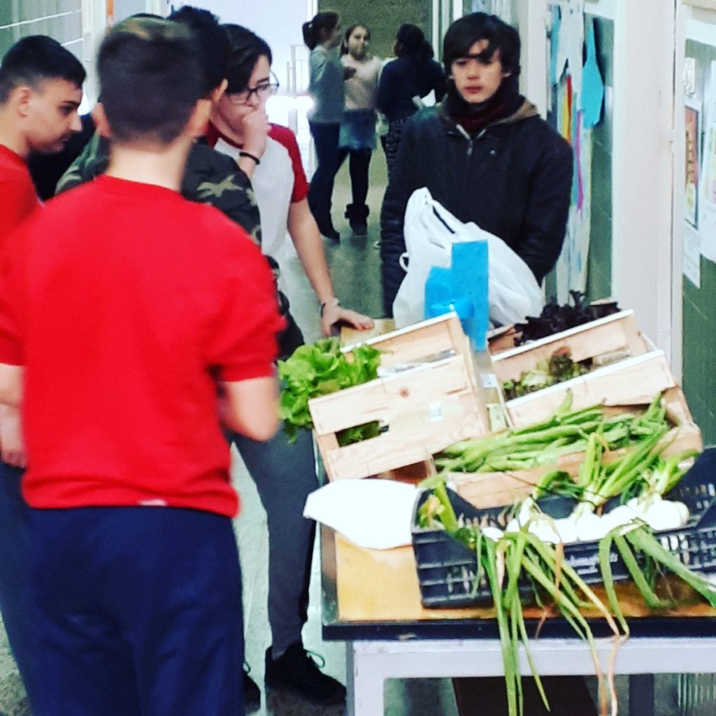 El passat dimarts vam fer una paradeta on veníem els nostres productes de l’hort: cebes, faves i enciams. Vam pensar en un preu simbòlic perquè els i les mestres compressin els nostres productes.