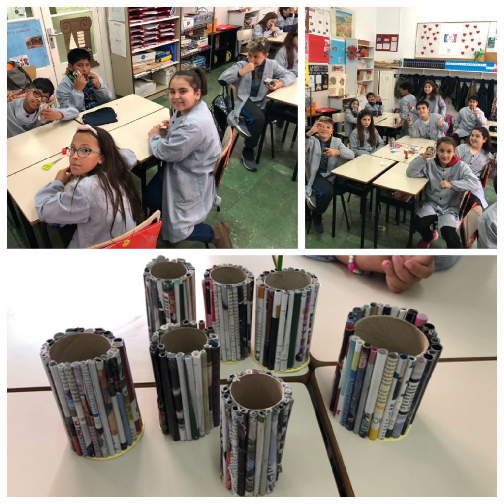 Reutilitzem materials pel medi ambient. admin30/04/19 Els alumnes de 4t vam celebrar el dia del medi ambient fent un portallapis. Hem reutilitzat materials com el rotllo del paper higiènic i fulls de revistes per elaborar-ho.