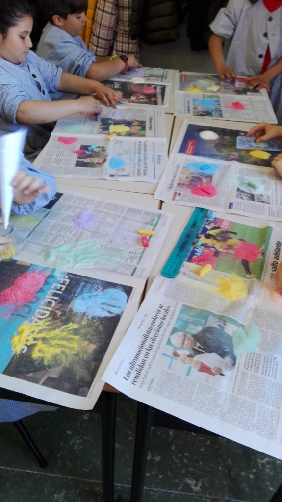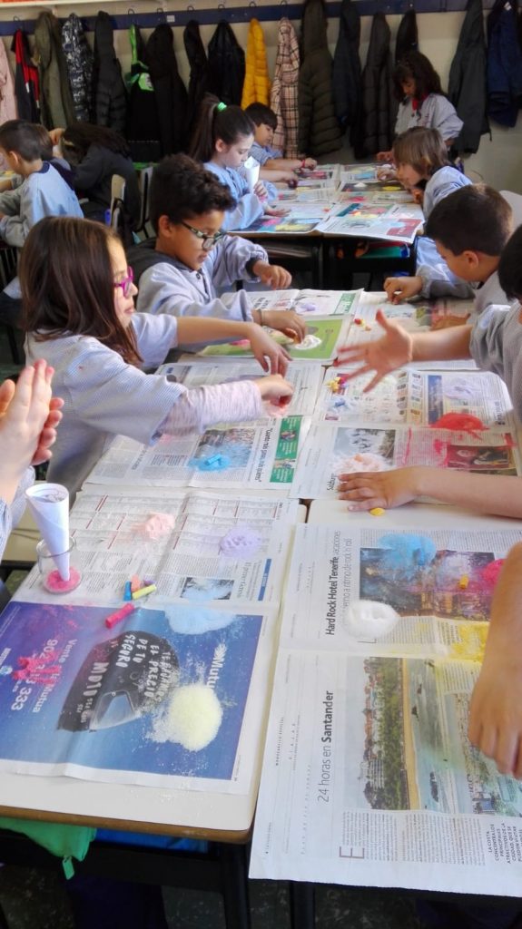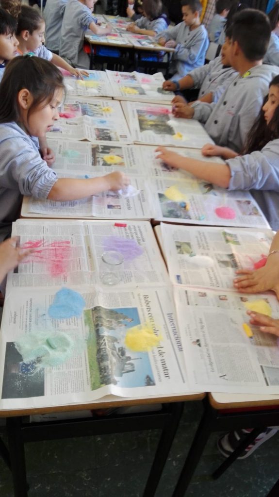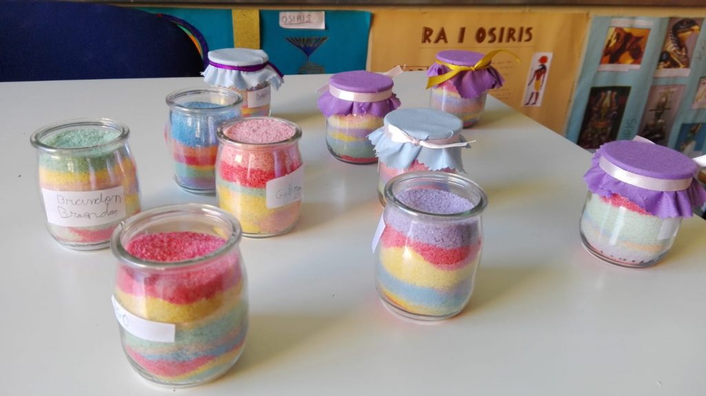 Tenyir sal admin10/04/19 La classe de tercer de primària ha fet a plàstica, un taller que consistia en tenyir sal comuna amb guixos de colors. Després hem omplert uns pots de vidre, dipositant la sal tenyida a capes de diderents colors. I ens han quedat molt macos!! —