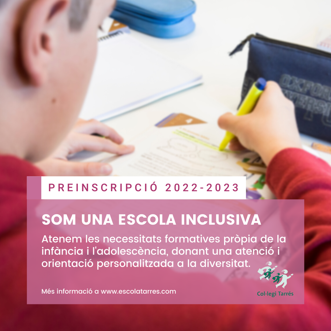 Al Col·legi Tarrés ens definim com a centre inclusiu: volem afavorir la inclusió de tot l’alumnat, independentment de les seves necessitats educatives, per tal que se senti partícep dels processos del seu aprenentatge, detectant, intervenint i adaptat.