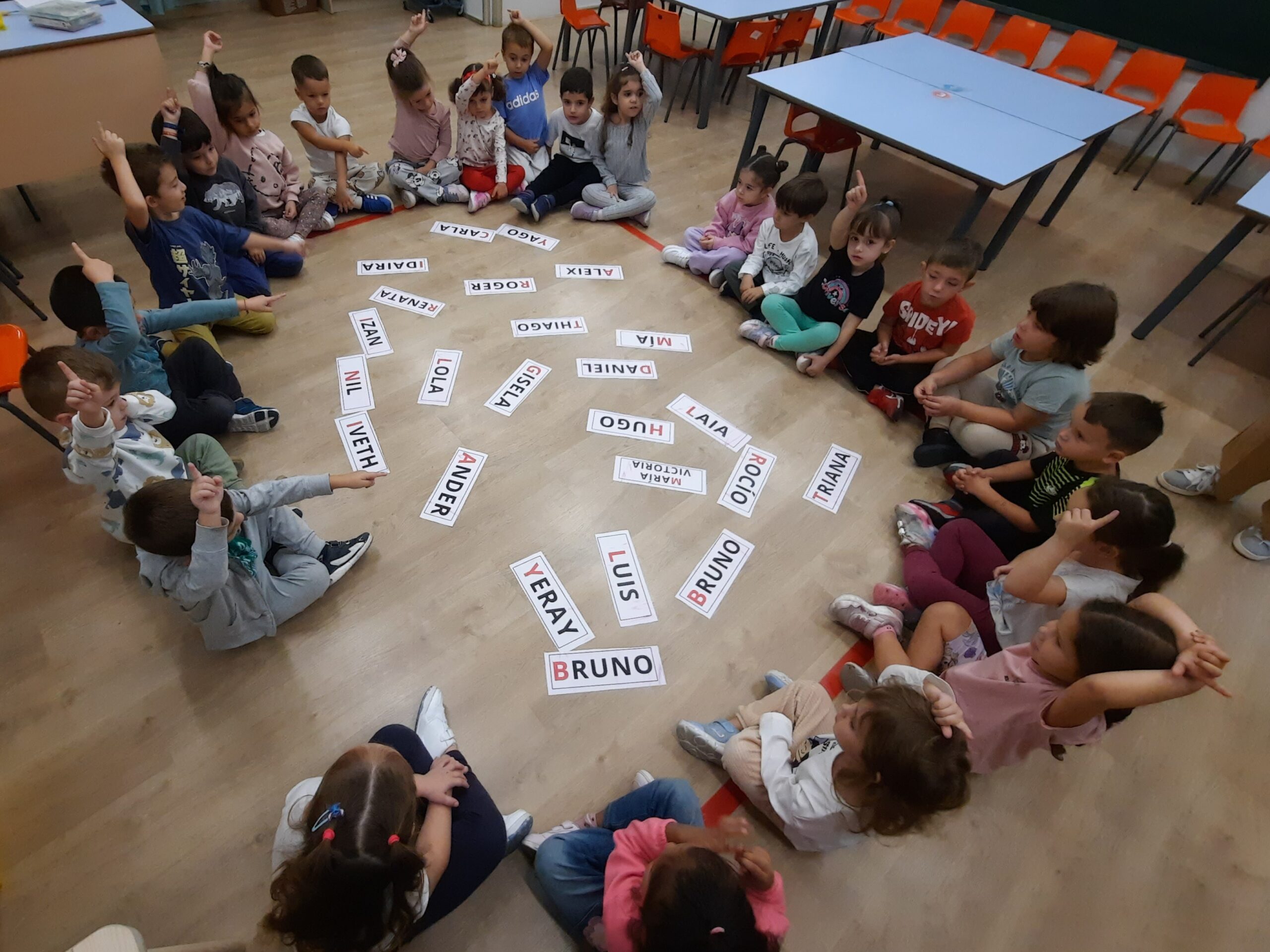 Aquest mes d’octubre, els infants d’I4 hem jugat amb els nostres noms. Els hem identificat, hem comparat els més llargs i els més curts i hem descobert els que compartien lletres. També, els hem resseguit amb el dit i els hem escrit amb plastilina.