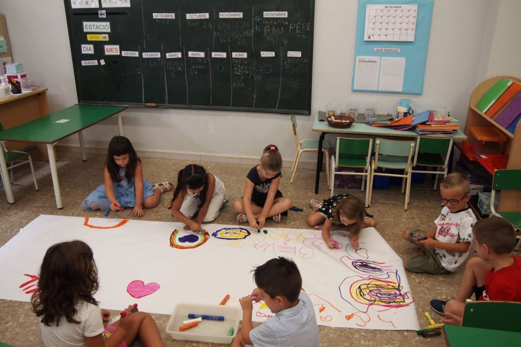 # Primera immersió lingüística a la llengua anglesa: els infants s’han de familiaritzar amb la llengua i aprendre les primeres nocions comunicatives. Es fan dues hores setmanes d’anglès, una amb el grup classe i una altra amb grup desdoblat (12/13 infants).