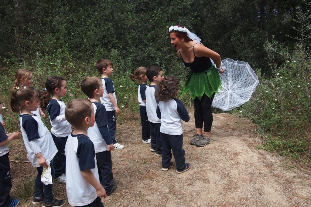 # Primera immersió lingüística a la llengua anglesa: els infants s’han de familiaritzar amb la llengua i aprendre les primeres nocions comunicatives. Es fan dues hores setmanes d’anglès, una amb el grup classe i una altra amb grup desdoblat (12/13 infants).