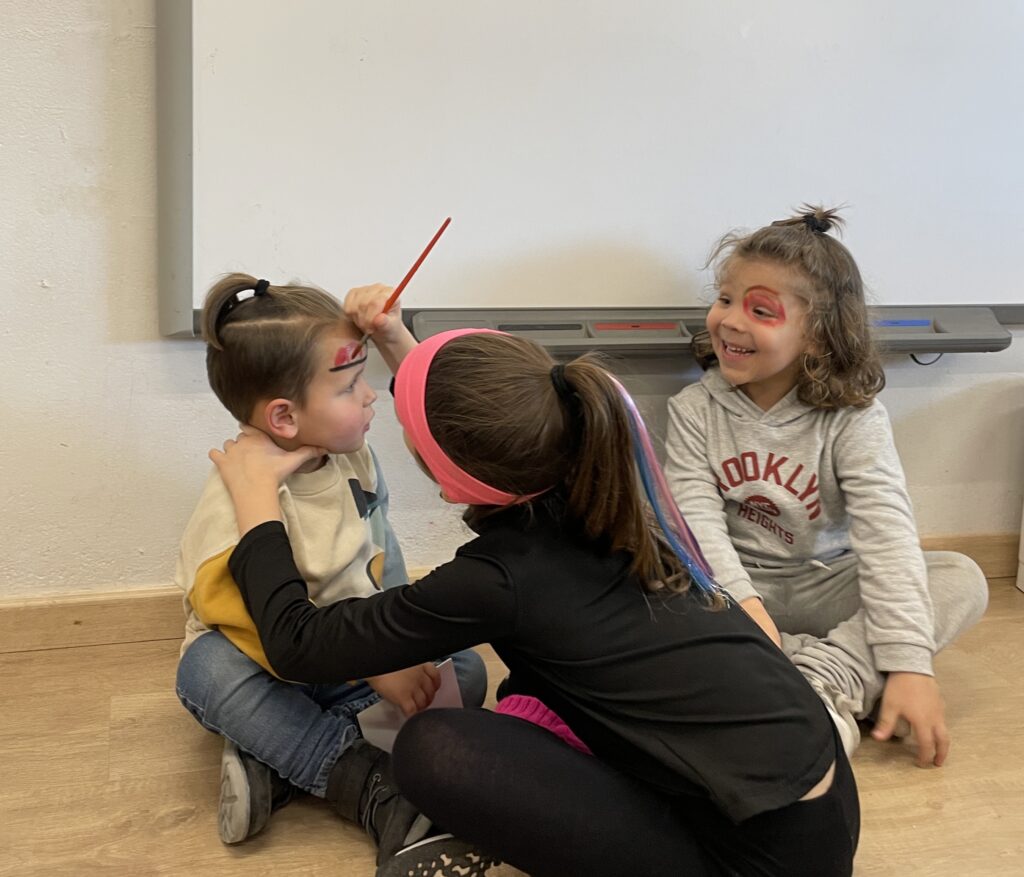 El dimecres a la tarda de la setmana boja del Carnestoltes l’alumnat de 4t i de Inf-3 vam fer un taller de maquillatge de cares de Carnaval. Ens va