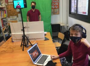 I rebem nous “Nouvinguts” i n’acomiadem d’altres… ja se sap… però com que el que segueix amb nosaltres, malauradament, és el maleït virus. Per aquesta raó ens hem vistos obligats a usar l’aula d’acollida com a “plató improvitzat” ja que l’aula que utilitzàvem es troba en un lloc sense ventilació!