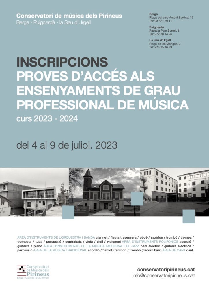 • Inscripció a les proves d’accés al Grau Professional de Música