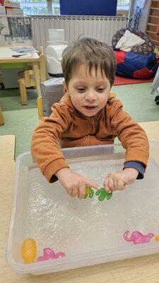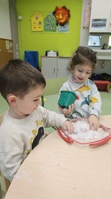A través dels seus contes, els nens i nenes de l’aula han pogut observar com canvia la natura al llarg de l’any i han experimentat aquestes transformacions com a protagonistes. Hem tocat fulles seques i rugoses a la tardor, hem sentit la fredor suau de la “neu” a l’hivern i hem notat la frescor i els aromes florals de la primavera.
