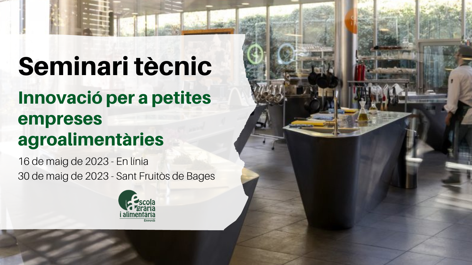 Des de l’Escola Agrària i Alimentària de l’Empordà, juntament amb la Fundació Alícia, hem organitzat el seminari tècnic ‘Innovació per a petites empreses agroalimentàries‘ que tindrà lloc el dimarts 16 de maig de 2023 en línia, i el dimarts 30 de maig de 2023 a la seu de la Fundació Alícia.