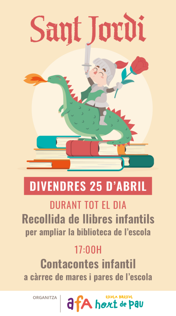 El divendres 25 d’abril , celebrarem la diada de Sant Jordi amb una jornada molt especial plena de contes i llibres!