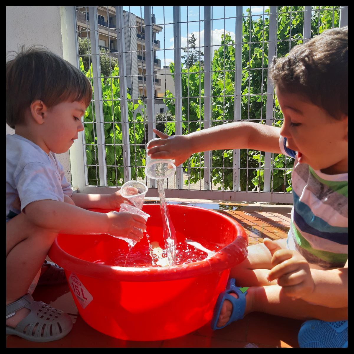 Omplir i buidar diferents tipus de recipients, fer transvasaments, abocar, observar les causes-efectes de les seves accions, descobrir quan un objecte sura o s’enfonsa, conèixer les propietats dels objectes, experimentar la sensació d’anar moll… són alguns exemples dels aprenentatges i descobriments que els infants poden experimentar.