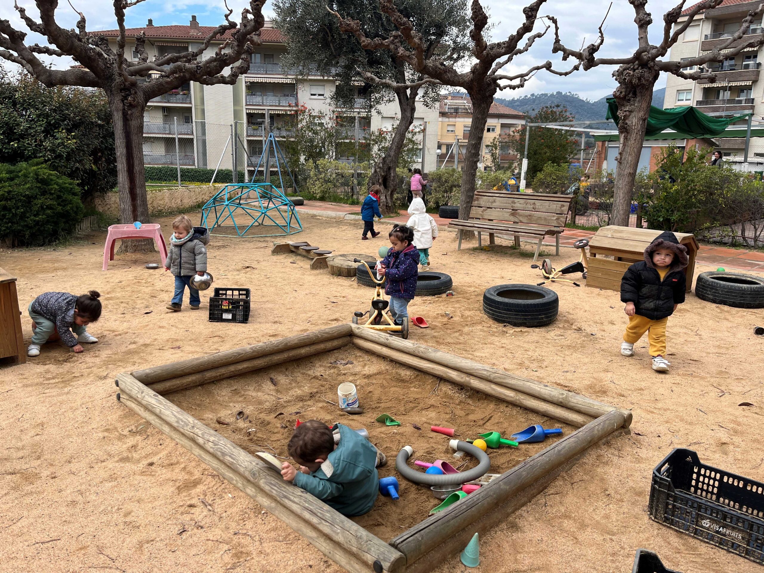 A l’escola l’espai exterior és un entorn d’aprenentatge ric, viu i canviant, que ofereix infinites oportunitats perquè els infants explorin, experimentin i es vinculin amb el món que els envolta.