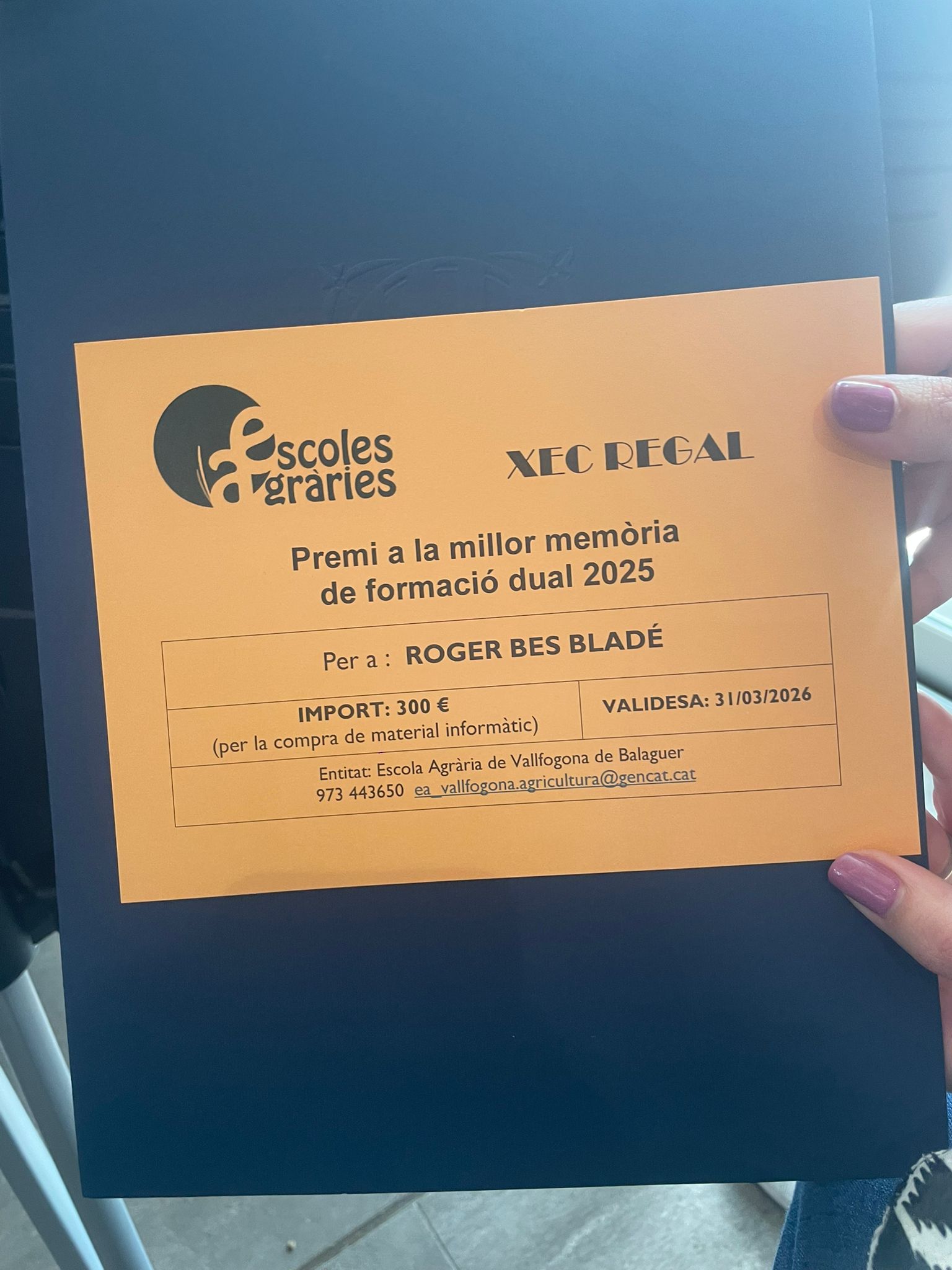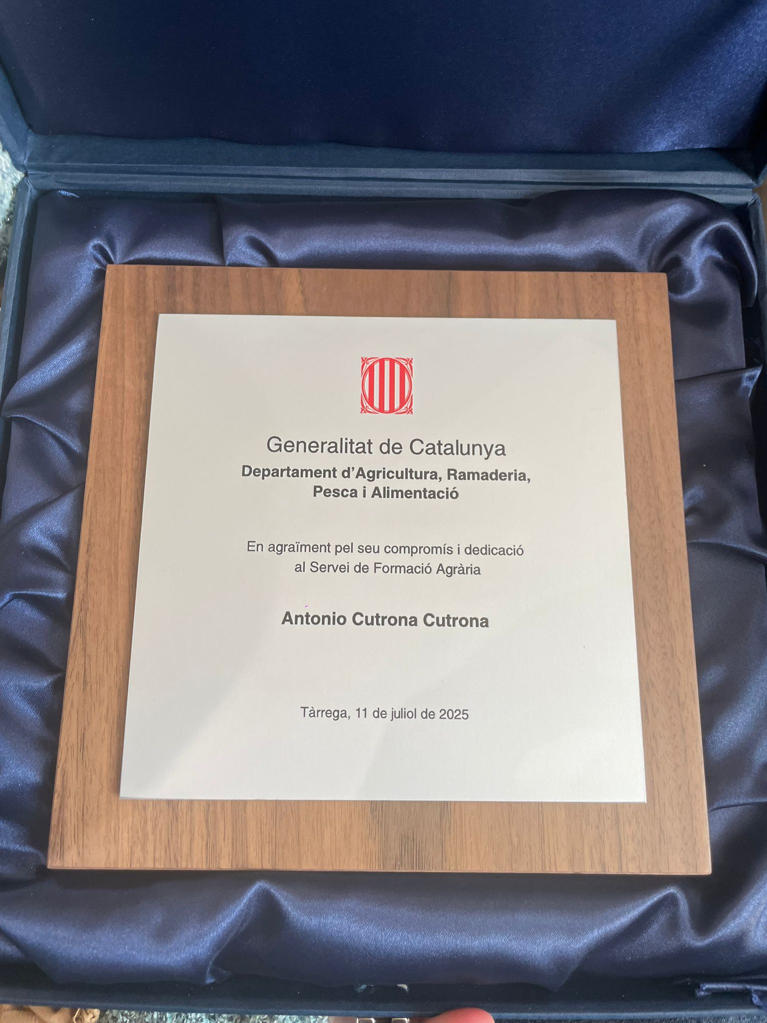 Durant l’acte vam recollir el premi a la millor memòria de Formació Dual 2025 per al nostre alumne Roger Bes, un èxit que posa en valor el treball conjunt d’alumnat, professorat i empreses. També vam retre un sentit homenatge al nostre estimat antic director Antoni Cutrona, destacant el seu compromís i dedicació al Servei de Formació Agrària