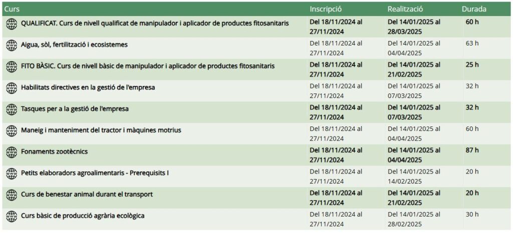 Des del 18 al 27 de novembre, teniu l’oportunitat d’inscriure-us a 10 cursos de Formació Agrària a Distància (FAD) que ofereixen continguts actualitzats i adaptats a les necessitats del sector agrari. Aquests cursos estan pensats per facilitar l’aprenentatge flexible i còmode, combinant la qualitat educativa amb la comoditat de la formació en línia. Trobareu […]