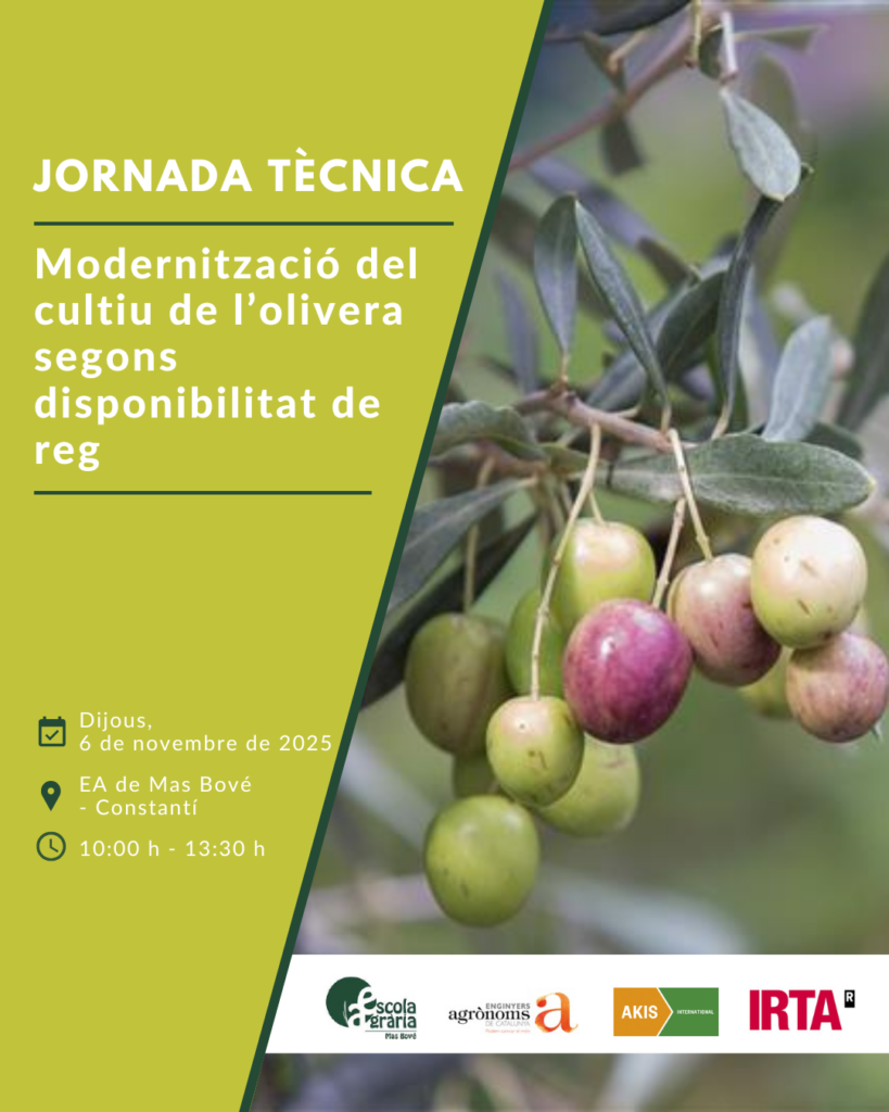Jornada tècnica “Modernització del cultiu de l’olivera segons disponibilitat de reg” Llegeix més »