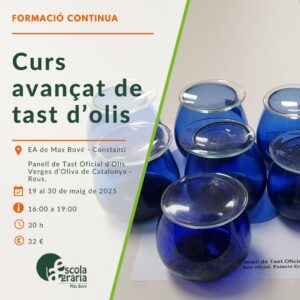 Dies 19, 20, 21, 22 i 23 de maig de 2025 a l’Escola Agrària de Mas Bové – Constantí Dies 26, 27, 28, 29 i 30 de maig de 2025 al Panell de Tast Oficial d’Olis Verges d’Oliva de Catalunya – Reus |