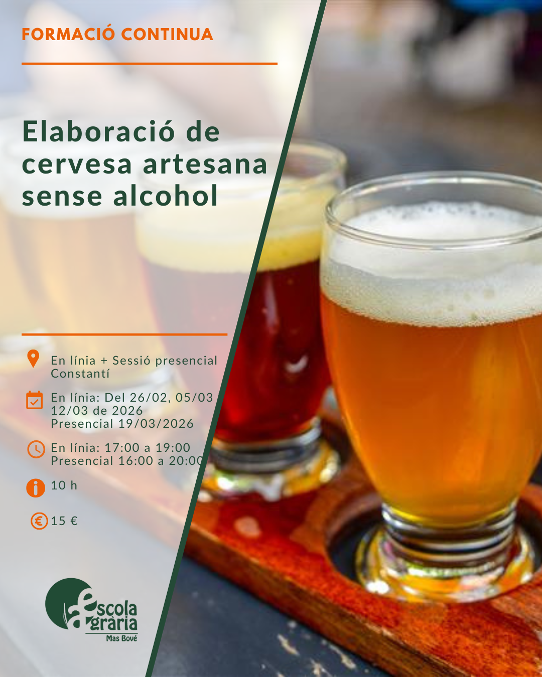 ✔ 1 sessió pràctica presencial a l’Escola Agrària Mas Bové, on posarem en comú els coneixements i farem demostracions pràctiques.