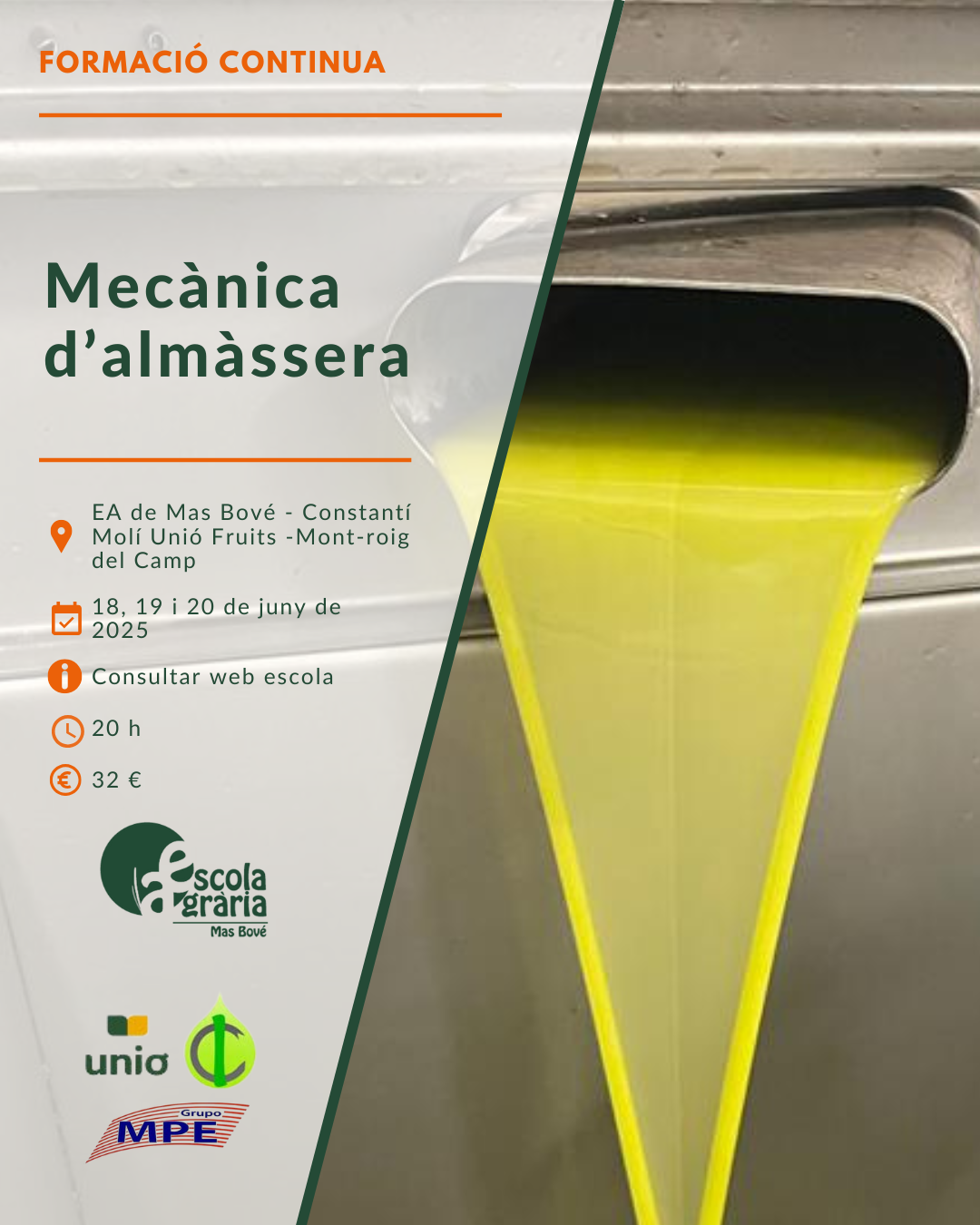 El curs s’adreça a personal tècnic, operaris d’almàssera, responsables de producció i, en general, a qualsevol professional del sector interessat a millorar les seves competències tècniques en el manteniment i la reparació d’aquests equips essencials.
