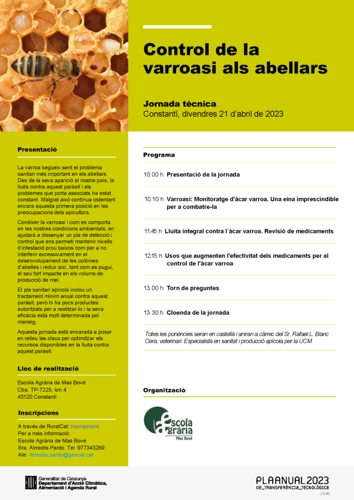JT Control de la varroasi als abellars Feu un comentari / Per admin / 13/04/2023 / Formació i Transferència General Jornades Transferència Portada