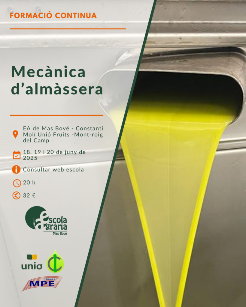 L’Escola Agrària de Mas Bové ha finalitzat una nova edició del Curs bàsic de tast d’olis, una formació que enguany ha arribat a la seva 16a edició, consolidant-se com una de les propostes formatives de referència per introduir-se en l’anàlisi sensorial de l’oli d’oliva. El curs, realitzat entre el 3 i el 19 de febrer […]
