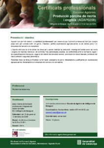 07/06/24L’Escola Agrària impartirà un certificat professional en Producció porcina de recria i engreix de 250h, a partir del gener del 2025.