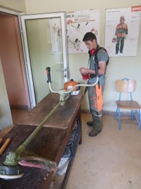 A mesura que avançava l’estada, va començar a assumir tasques pràctiques com el manteniment de l’hivernacle, el reg, la poda de plantes, l’esmolat de motoserres i, sobretot, el treball amb la desbrossadora. Aquest últim li va suposar un repte pel ritme intens i les altes temperatures, però també li va permetre guanyar habilitats tècniques, com ara el canvi de fil de la màquina, així com posar en pràctica coneixements apresos al cicle.