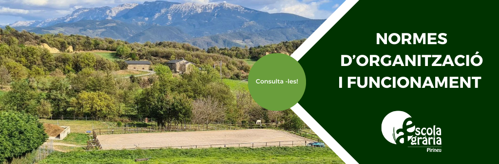 Des de l’Escola Agrària del Pirineu, hem creat les Normes d’Organització i Funcionament del Centre amb l’objectiu de regular la vida interna de l’escola, i establir de forma clara i coherent les relacions entre els diferents sectors que formen part de la comunitat educativa, plasmant les regles que obliguin a tots els qui d’una manera o altra participin en l’actuació educativa, i garanteixi, al mateix temps, els drets que la legislació vigent els atorgui. A més, estructura les normes tècniques, funcionals, pedagògiques i administratives de l’escola, per harmonitzar les postures de tots els sectors que hi tenen incidència.