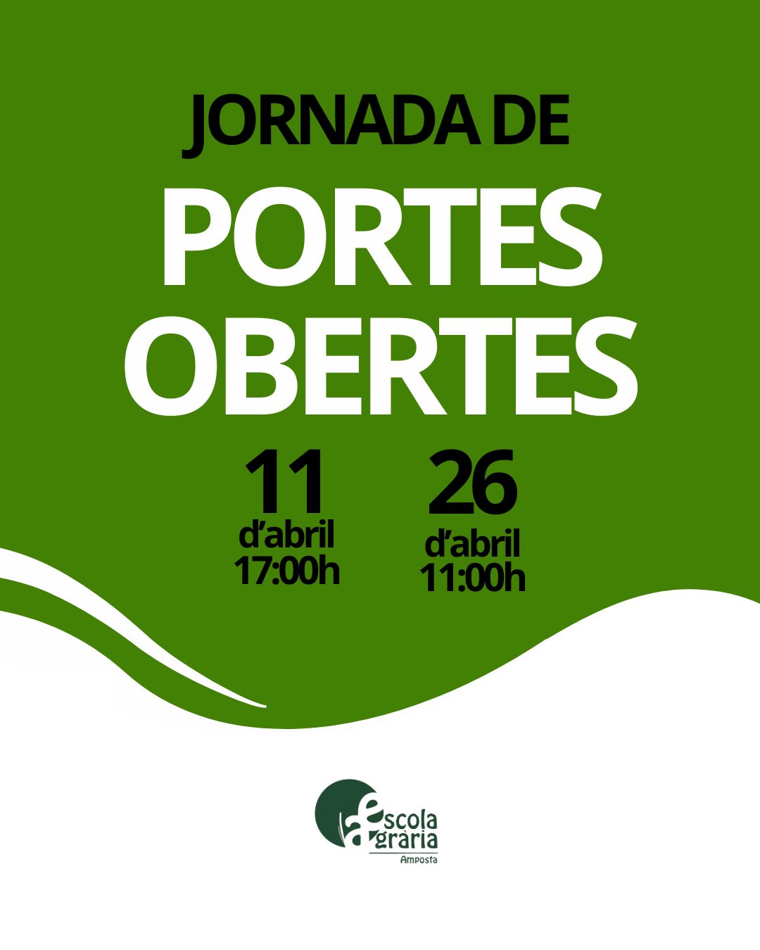 L’Escola Agrària d’Amposta obre les portes els dies 11 d’abril a les 17.00 h i 26 d’abril a les 11.00 h perquè estudiants i famílies puguin conèixer de prop les seves instal·lacions i la seva oferta formativa. Aquesta jornada és una oportunitat única per descobrir les opcions educatives i professionals que ofereix el centre.