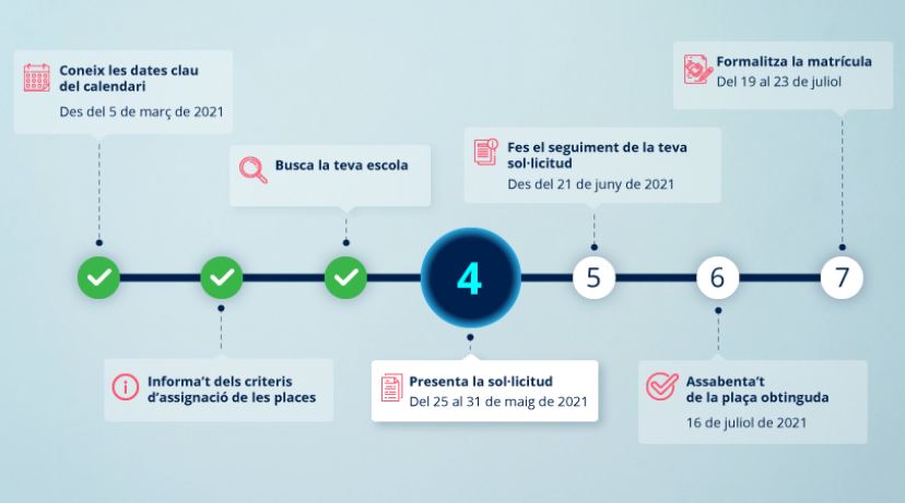 Si vols estar informat en tot moment del procés de preinscripció i matrícules 2021-2022 segueix el que publica el Departament d’Educació en aquest enllaç (terminis, documentació…):