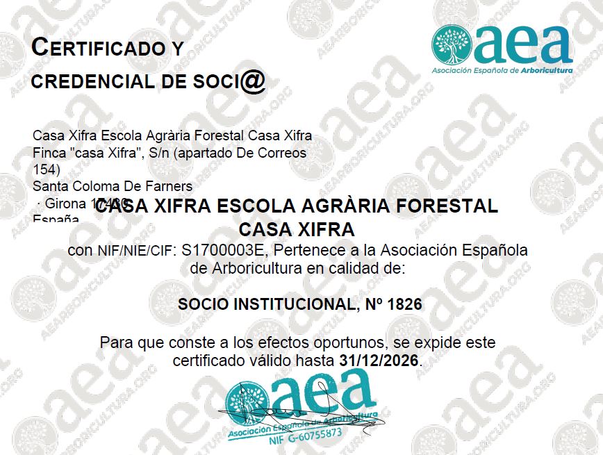 Recentment hem renovat la vinculació amb l’Associació Española d’Arboricultura fet que ens permet treballar conjuntament i millorar l’oferta formativa més adreçada a l’arboricultura en concret.