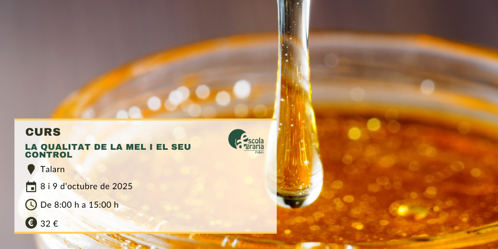 Des de l’Escola Agrària del Pallars, hem organitzat el curs ‘La qualitat de la mel i el seu control‘ que tindrà lloc el 8 i 9 d’octubre de 2025 a Talarn.