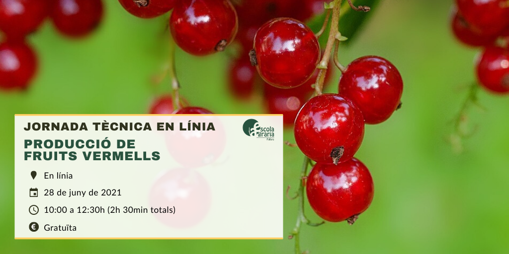 Des de l’Escola Agrària del Pallars, hem preparat la jornada tècnica en línia ‘Producció de fruits vermells‘ que tindrà lloc el proper 28 de juny de 2021.