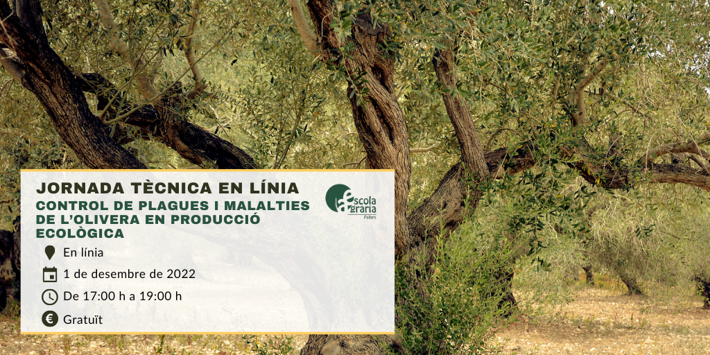 Des de l’Escola Agrària del Pallars, hem organitzat la jornada tècnica en línia ‘Control de plagues i malalties de l’olivera en producció ecològica’ que tindrà lloc l’1 de desembre de 2022.