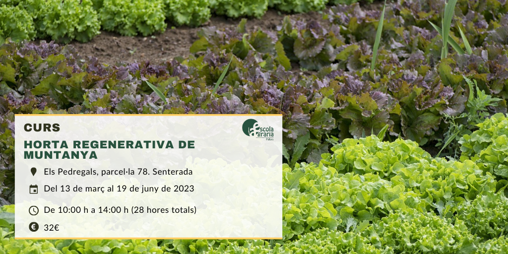 Des de l’Escola Agrària del Pallars, hem organitzat el curs ‘Horta regenerativa de muntanya‘ que tindrà lloc del 13 de març al 19 de juny de 2023.