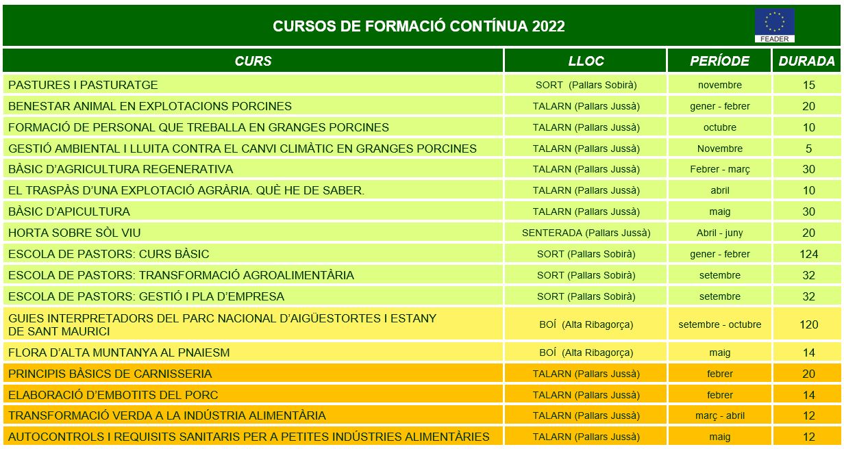Us convidem a consultar l’oferta de cursos i jornades de l’Escola Agrària del Pallars per l’any 2022