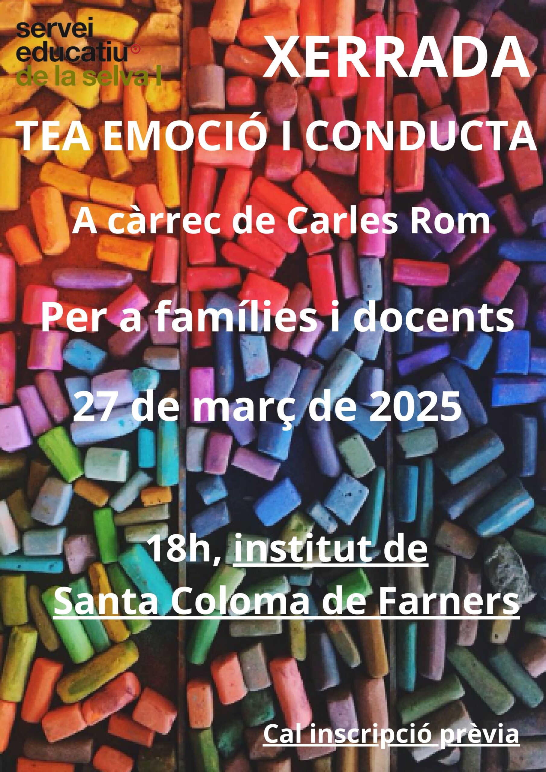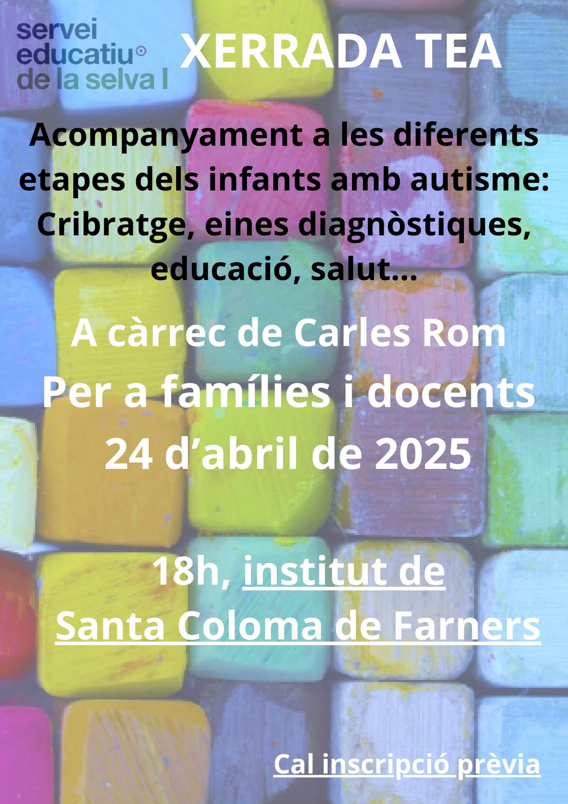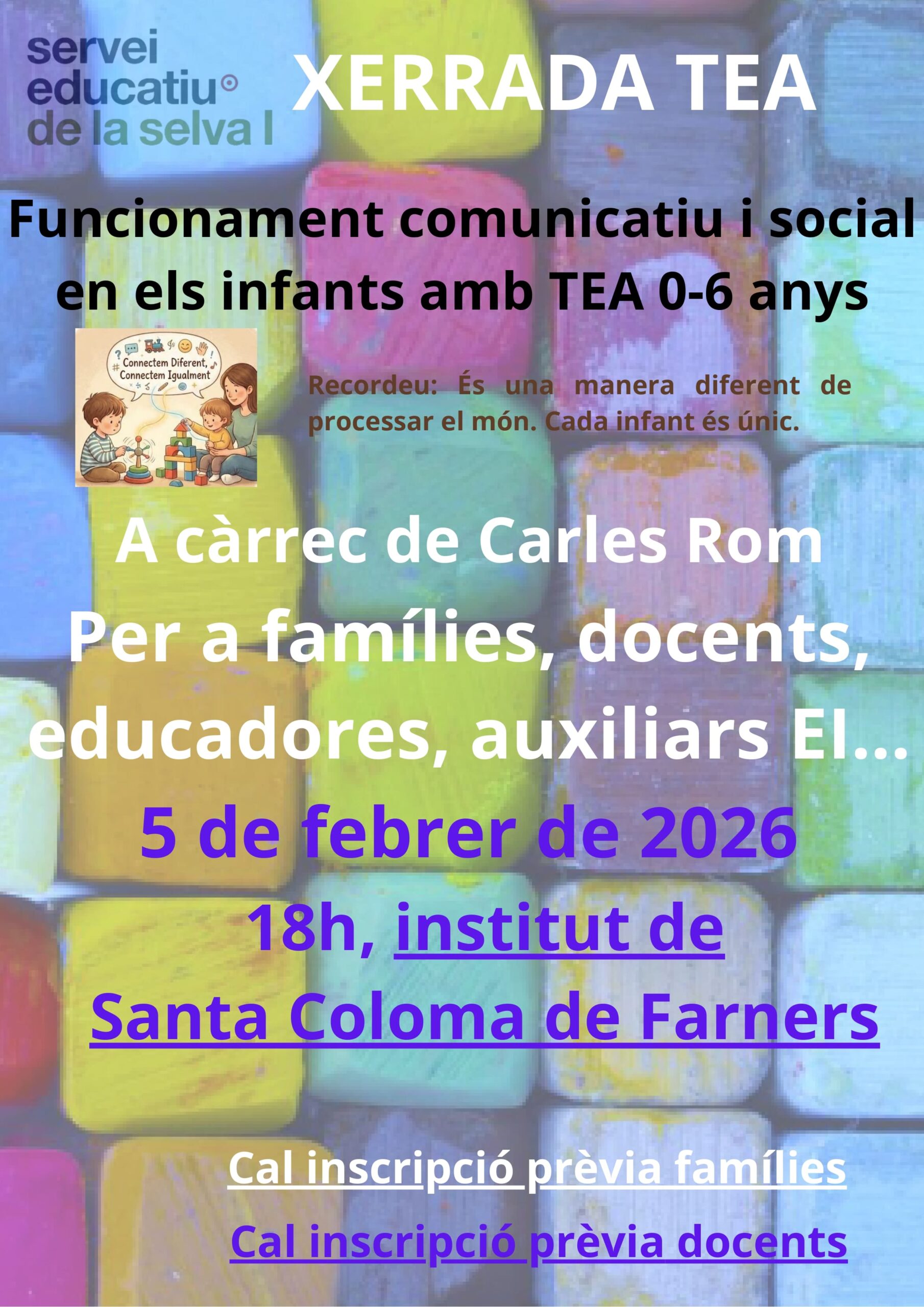 10/03/25El CRP de la SelvaI té previstes 3 xerrades amb en Carles Rom sobre el TEA.
