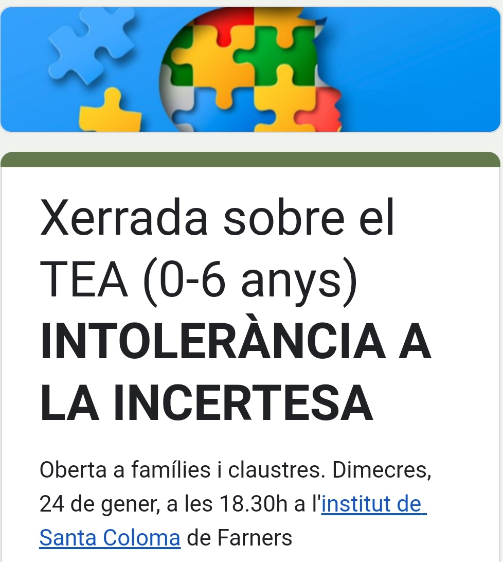 09/01/24Xerrada sobre el TEA (0-6 anys)
