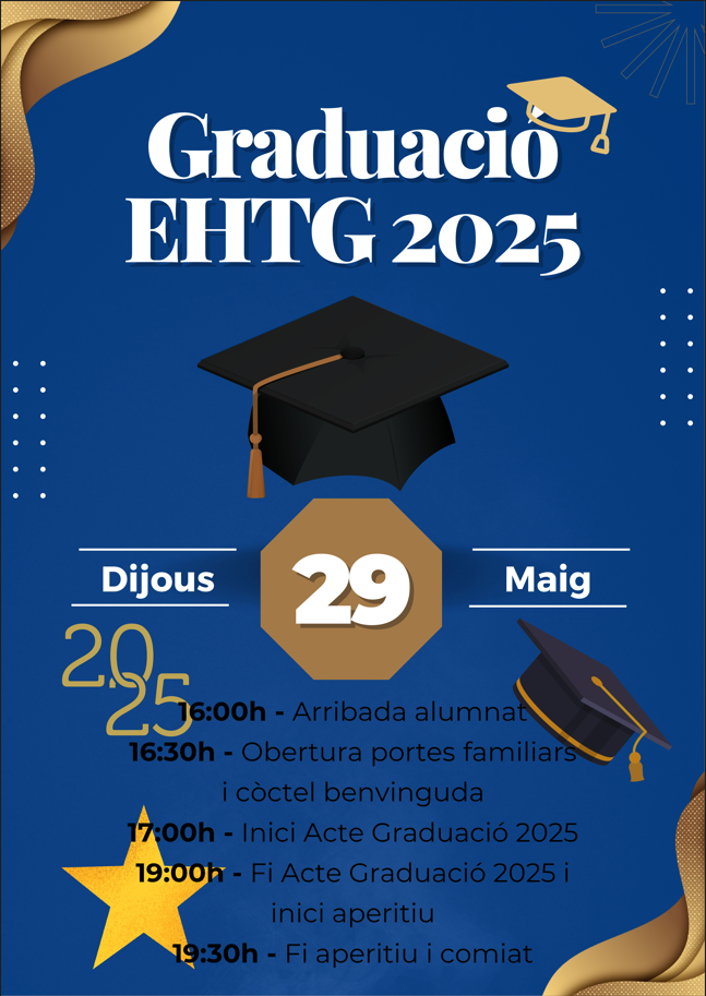 El proper dijous 29 de maig, celebrarem un dels moments més emotius del curs: la graduació del nostre alumnat. Una jornada per reconèixer l’esforç, la dedicació i el creixement dels estudiants que han arribat al final d’una etapa i es preparen per obrir nous camins professionals i personals.
