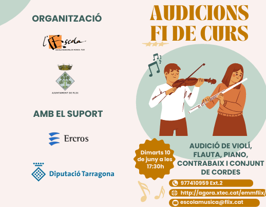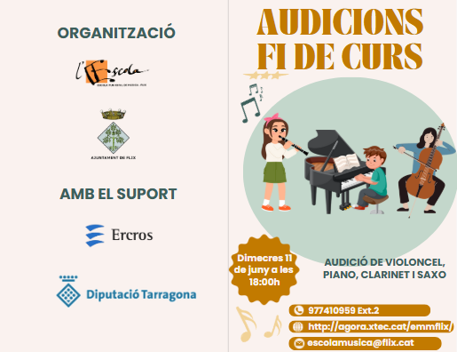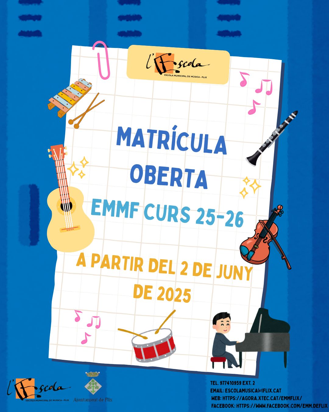 L’escola municipal de música comunica que ja s’ha obert el període de matriculació per al curs 2025-2026.