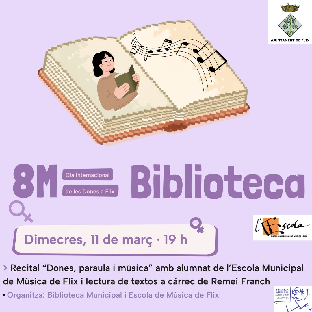 16/03/26El passat 11 de març amb motiu del 8 M, es va celebrar el recital “Dones, paraules i música”. Un recital per donar veu aquelles dones que en el seu moment no van ser visibles mitjançant la lletra i la música. Un recital organitzat per la biblioteca municipal Artur Bladé i Desunvila amb la col·laboració d’alumnes de l’Escola municipal de Música de Flix, i lectura de text a càrrec de Remei Franch.