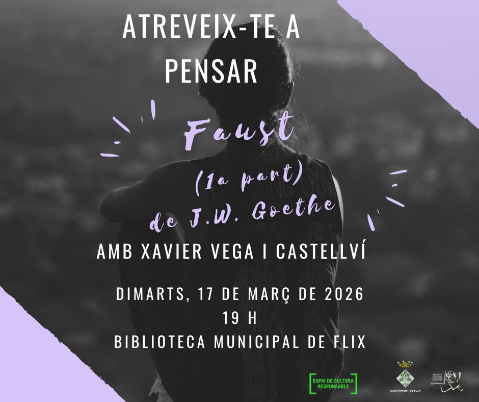 març a les 19h a la biblioteca de Flix, s’ha celebrat la xerrada “Atreveix-te a pensar” a càrrec de Xavier Vega i com a col·laboració en aquest acte, l’alumna Èlia Guiu Carapuig ha donat el toc musical al inici amb dues peces amb guitarra clàssica, Tonadilla de G.Tarragó