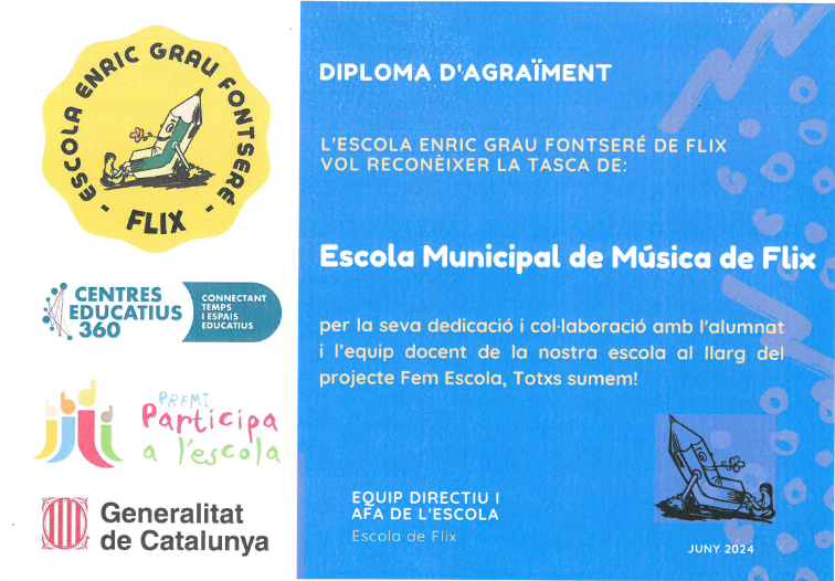 Volem felicitar a l’Escola Enric Grau Fontseré per ser guanyador del “Premi Participa a l’Escola”.