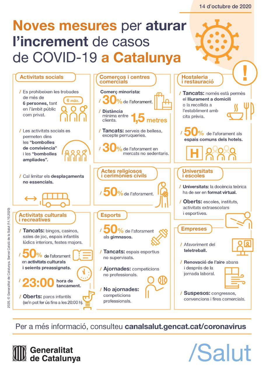 Us fem saber les noves mesures implantades per la Generalitat per aturar l’increment de casos de covid-19 a Catalunya.