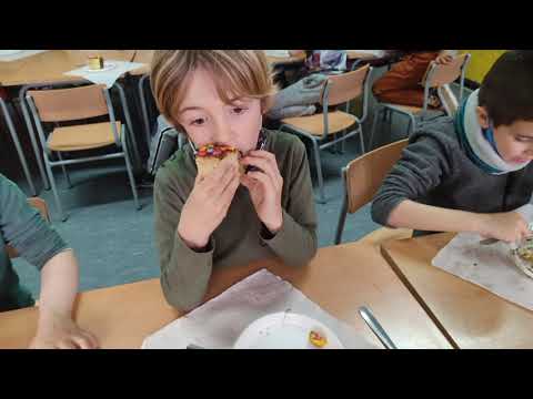 Com cada any hem celebrat la Diada de La Mona a l’escola. Cada grup a la seva classe, sense festa.
