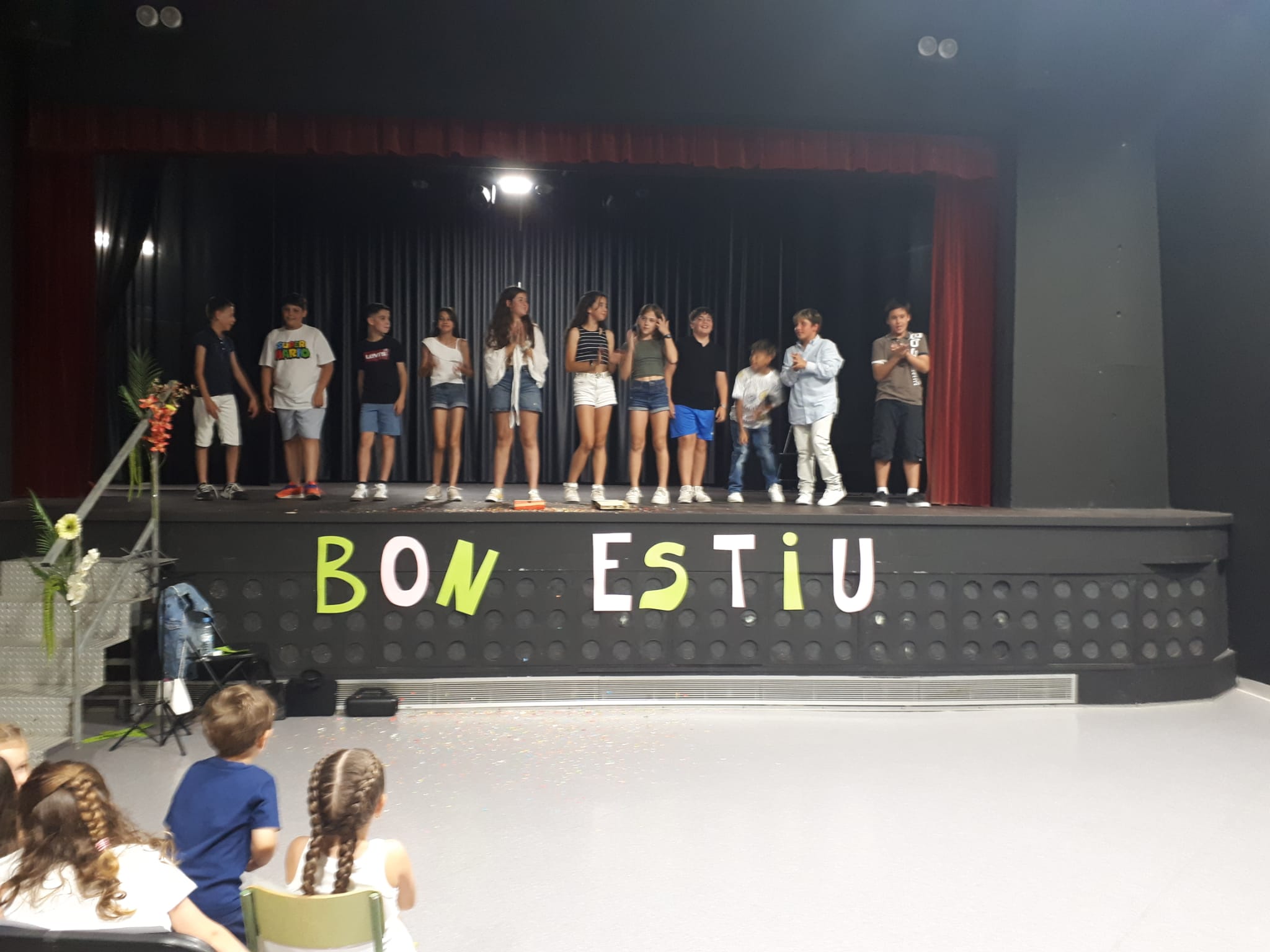 El divendres 21 de juny, a les 7 de la tarda, vam fer el Festival de final de curs de l’escola al Teatre Municipal d’Almoster. Vam preparar diverses actuacions que formaven part d’una història que ens van anar representant l’alumnat de 6è. La canalla  d’I3,I4 i I5 van ser Els animalets. Es tractava d’una sèrie d’exercicis motrius que es relacionaven amb diferents animals. Vam continuar amb l’alumnat del cicle inicial que van fer jocs de picar de mans amb La pirata Renata. Les nenes i nens de 4t ens van oferir la part instrumental i més tècnica amb la interpretació de Titànic amb la flauta: un treball de moltes sessions que va lluir molt. Van seguir més jocs de picar de mans amb Tinc una poció per part de 3r. Vam continuar amb una actuació per part de tota l’escola que havíem treballat en la cantata La veu de la Terra: la percussió de la pluja. Tota la mainada va representar un xàfec repartits en 4 grups en cadascun del quals hi havia mainada de tots els nivells i, posteriorment, van interpretar Remor, també de la mateixa cantata: un moment molt especial. I ens va oferir Gelat amb coreografies creades entre totes i tots que van agradar a grans i petits.
