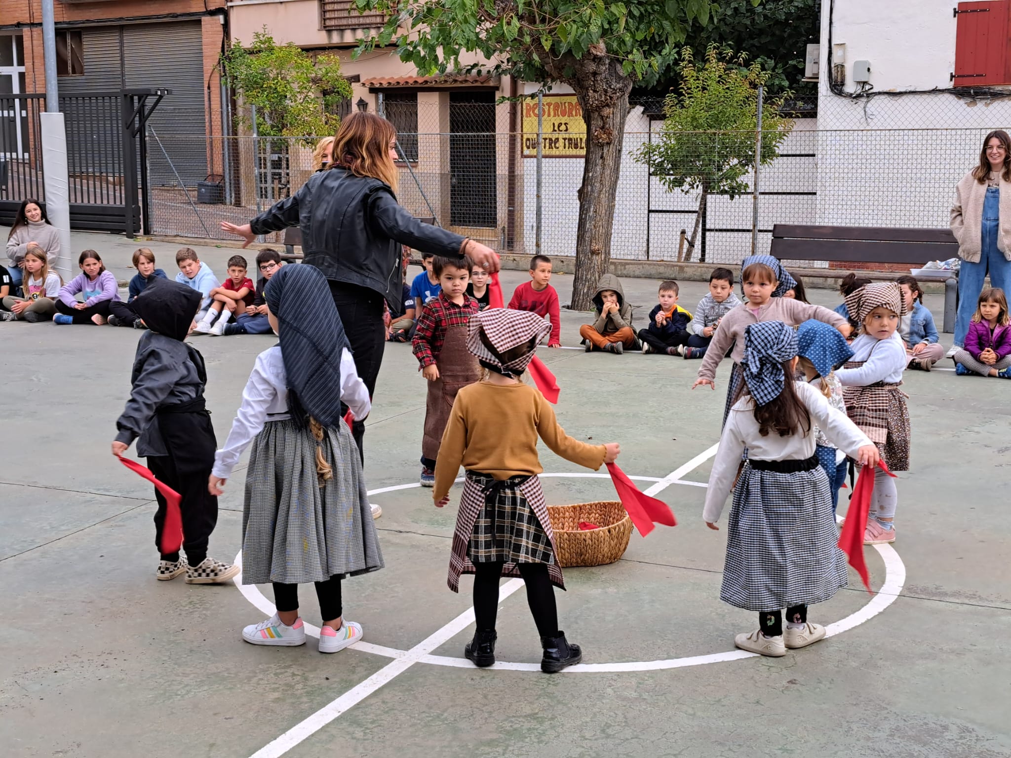 Que bé que va anar la ballada a la plaça! Els arbres i la canalla són tan bonics que, acompanyats de la música de la cobla i les sardanes, van dibuixar una obra d’art a l’aire d’Almoster. Cal no perdre la cultura, les tradicions, l’art. L’emoció que sentim les persones davant d’un fet artístic mai ens la podrà transmetre la tecnologia, ens cal envoltar-nos de coses bones i úniques en directe, davant els uns del altres. El Sant Jordi d’enguany l’hem fet durar i ha valgut la pena. Els més petits ja començaven a jugar amb la dreta i l’esquerra, els mitjans sabien curts, llargs, dosos, tresos i el cicle superior més els de 4t van seguir una sardana que tirava 10 de curts més un tres i 56 de llargs més un dos, una adaptació de La Maria de les trenes!
