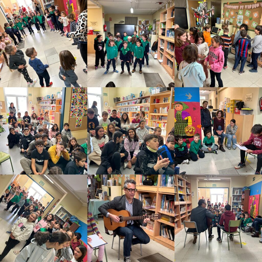 Enguany també, i molt! Gràcies a la col·laboració desinteressada d’un músic professional i d’una amiga que ens l’ha presentat, el 22 de novembre del 2024 vam poder ser compositors de la lletra d’una cançó que serà de la nostra escola. D’una manera natural, el Fito Luri anava escrivint estrofes i ordenant notes i acords amb la seva guitarra a partir d’unes idees i paraules que la nostra canalla anaven improvisant en un ambient agradable.