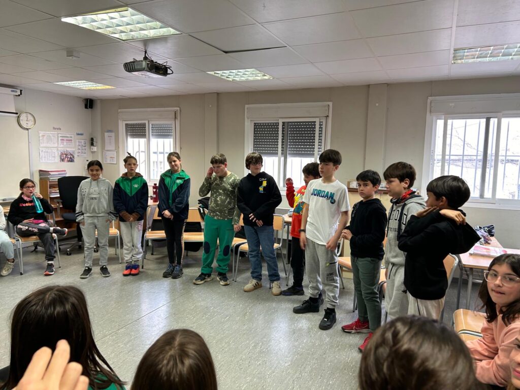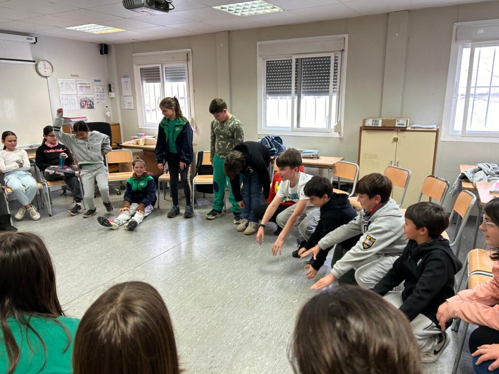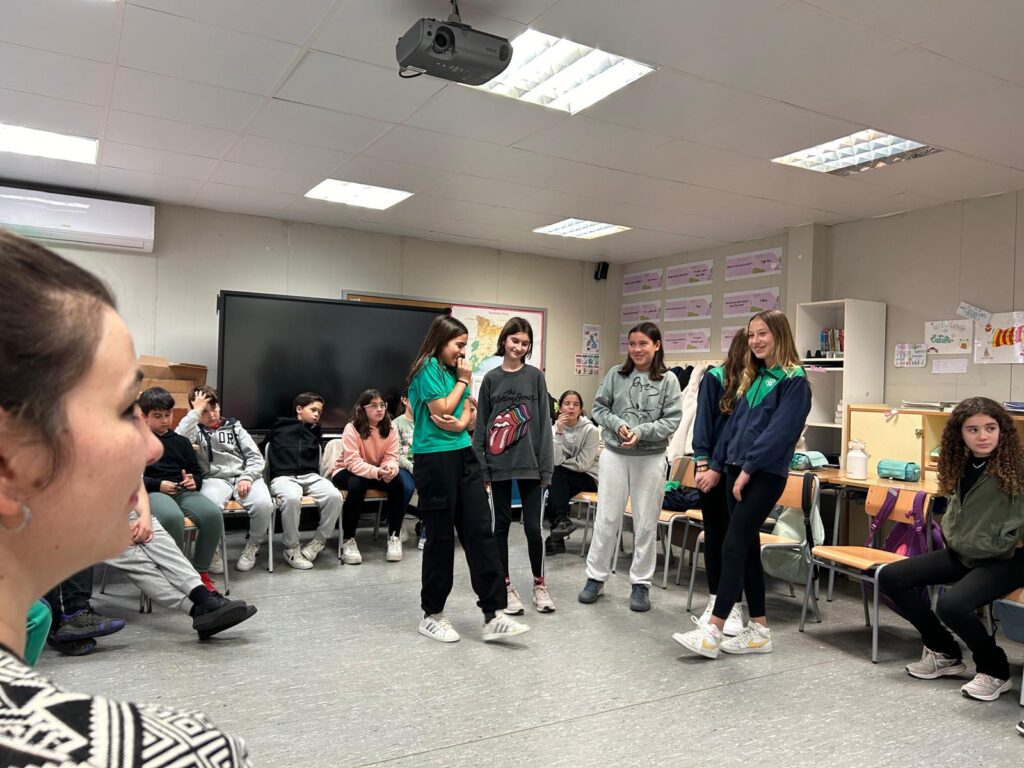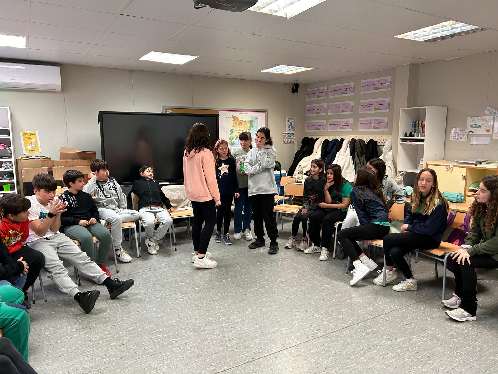 Dues components del grup d’arts escèniques Sinèrgia ens han ofert un taller a l’alumnat del cicle superior relacionat amb el Dia Internacional de les dones. A partir d’un debat i del teatre, eina valuosa per posar-nos a la pell d’un altre jugant, la canalla han representat comportaments que ens trobem a la societat entre homes i dones i els hem analitzat.